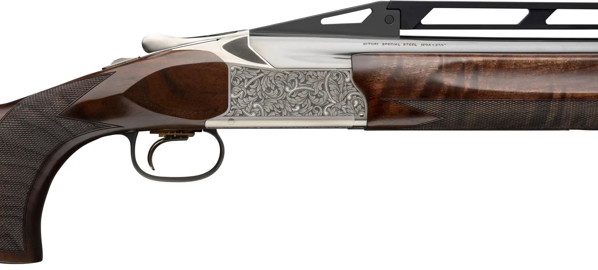Browning Citori 825 Trap Max Under Shotgun - 12Ga, 2-3/4", 32", Vented Rib, Polished Blued, Engraved Low-Profile Steel Receiver, Adjustable Comb And Length Of Pull, Grade V/IV Gloss Oiled Black Walnut Stock, HiViz Pro-Comp Front Sight And Ivory Mid-Bead,