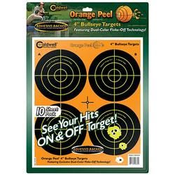 Caldwell Shooting Supplies Paper Targets - Orange Peel Bullseye Targets, 4", Orange, Adhesive-Backed, Featuring Dual-Color Flake-Off Technology, 10 Sheets Pack