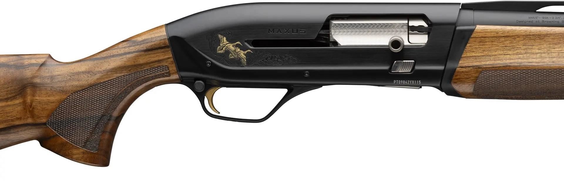 DEMO Browning Maxus II Black Gold Semi-Auto Shotgun - 12Ga, 3", 28", Matt Blued Barrel, Black Anodized Receiver, Grade 3 Walnut Stock, Fiber Optic Front Sight, Invector Plus (F,M,IC) Unfired - New in Box