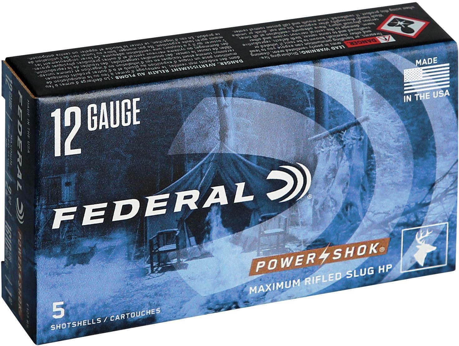 Federal Power-Shok Shotgun Ammunition - 12Ga, 2-3/4", Max DE, 1oz, Rifled Slug HP, 5rds Box