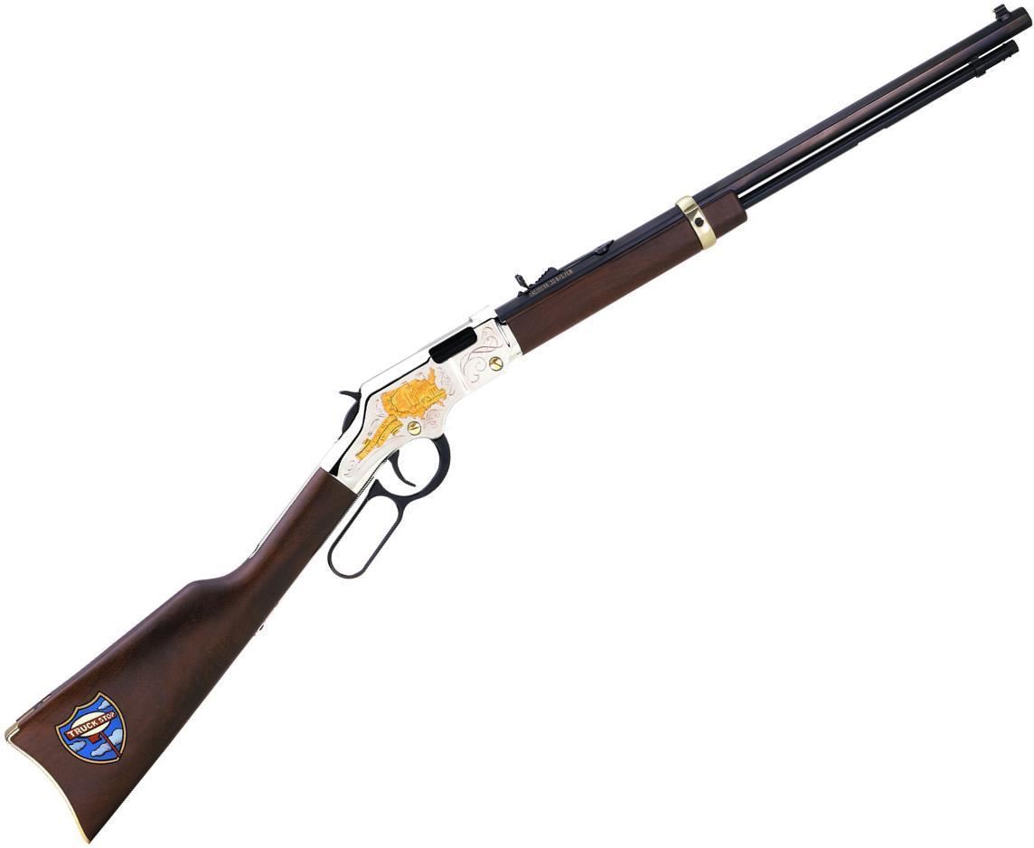 Henry Golden Boy Lever-Action Rifle - Truckers Tribute - 22 LR (16rds)/22 Short (21rds), 20", Blued, Brasslite Receiver, American Walnut, Adjustable Buckhorn Sight