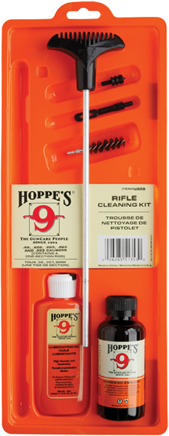 Hoppe's No. 9 Cleaning Kits Rifle & Shotgun Cleaning Kit - All Calibers, With 3-Piece Steel Rod, 2 Oz. Bottle Cleaning Solvent & 2.25 Oz. Lubricating Oil, Clamshell, No Brushes, Universal