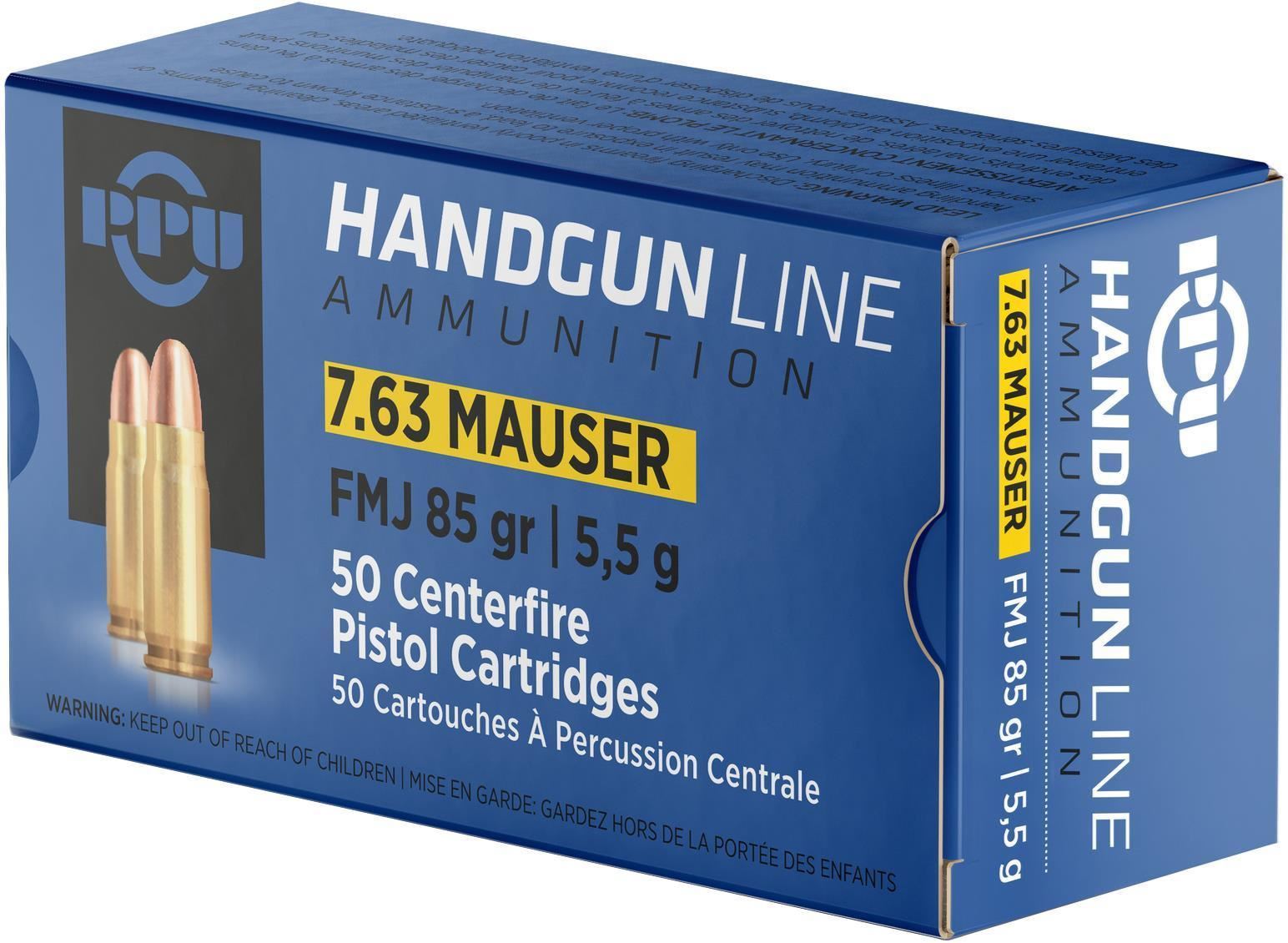 Prvi Partizan (PPU) Pistol Ammunition - 7.63 Mauser, 85Gr, FMJ, 50rds Box
