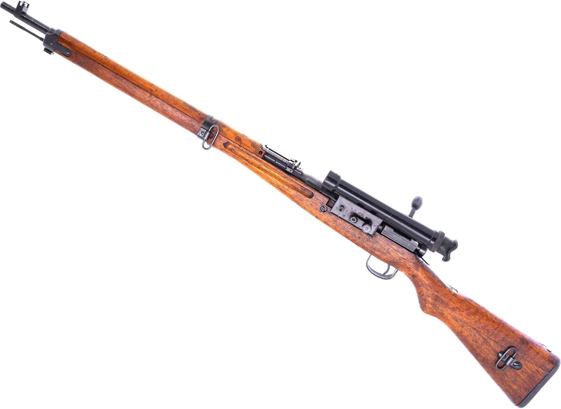 - Used Arisaka Type 99 Bolt-Action Sniper Rifle, Converted To 30-06 Sprg, 25.5" Barrel, Full Military Wood Stock, 4X Riflescope - Nagoya Mfg, Chrysanthemum Crossed Out, Numbers Matching Except Scope, Good Condition