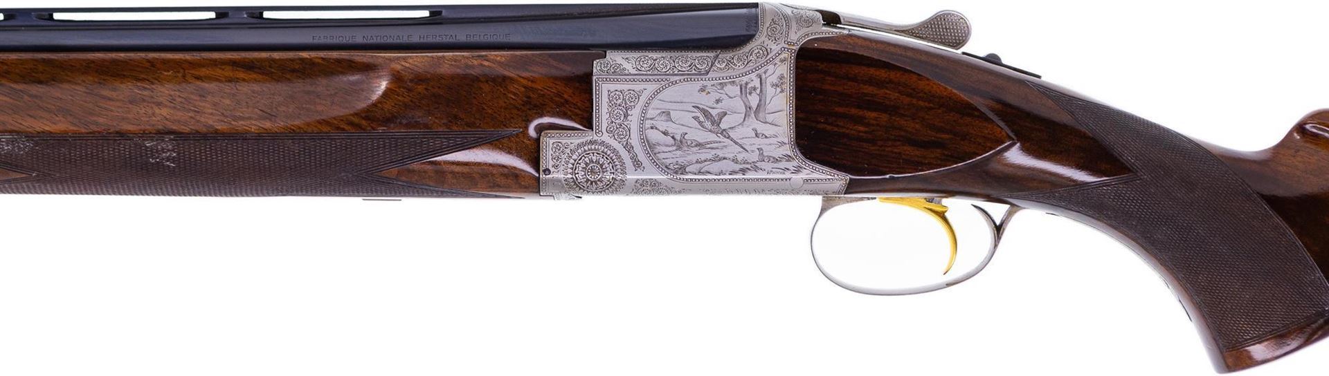 - Used Browning Superposed B2 International Skeet Over-Under Shotgun - 12-Gauge, 28'' Barrel Fixed Skeet, Coin Finish Receiver w/Hand Engraved Game Scene, Walnut Stock 13-3/4" LOP With Kick EEZ Pad, 1972 Production, Made In Belgium, Includes Browning Take
