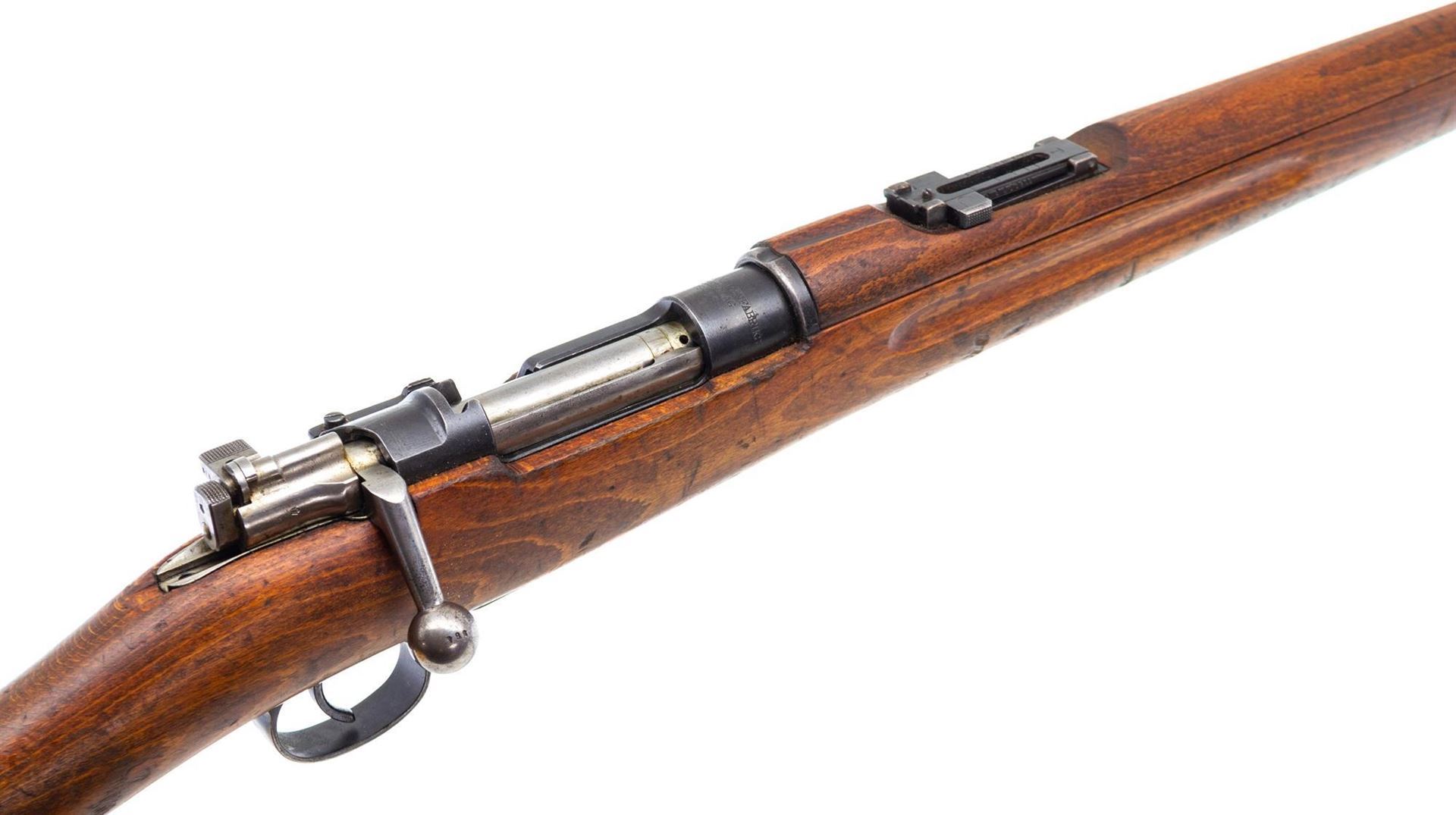 - Used Husqvarna Mauser M38 Bolt-Action 6.5x55mm Swedish, Full Military Wood, 24" Barrel, 1941 Mfg., Threaded Muzzle, Stock Disc, Smaill Crack in Stock at Tang, Missing Front Sight, Rust on Buttplate, Overall Fair Condition