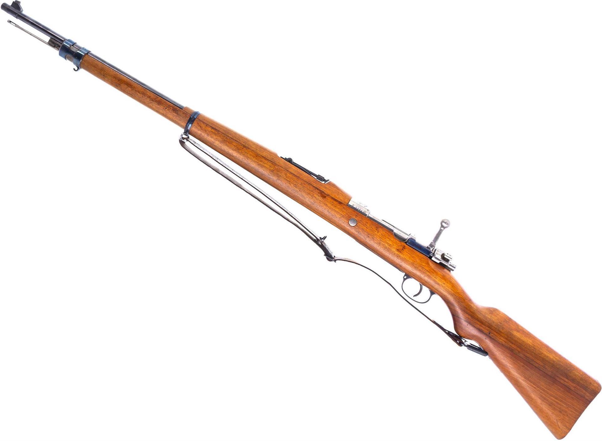 - Used Mauser Model 1908 Brazilian Contract Bolt-Action Rifle - 7x57, 29.5" Barrel, Full Miliitary Wood Stock, Matching Numbers, Matching Bayonet, Framed Original Test Target, Leather Sling, Muzzle Cap, Very Good Condition