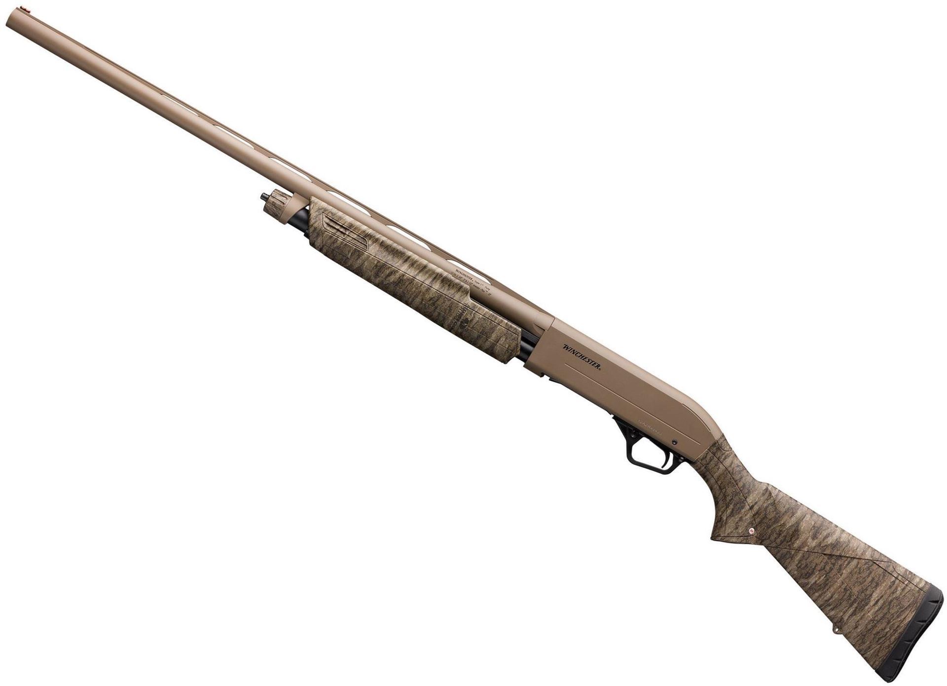 Winchester SXP Hybrid Hunter Pump-Action Shotgun - 12Ga, 3.5", 28", Vented Rib, Chrome Plated Chamber & Bore, FDE Barrel And Receiver, Mossy Oak Bottomland Camo Synthetic Stock, TruGlo Fiber Optic Front Sight, Invector-Plus Flush, 4rds, (F,M,IC)